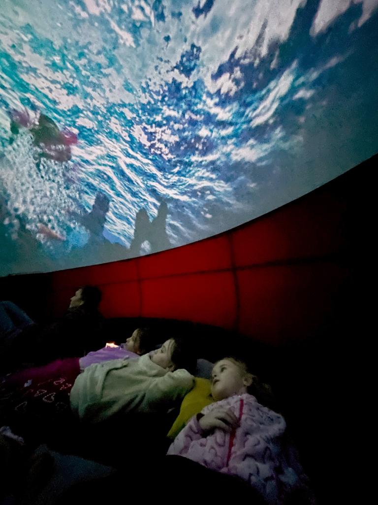 Velkým lákadlem únorového setkání prvňáčků s předškoláčky bylo sférické kino. Společně zhlédly představení Podmořský svět. Ve třídách poté probíhaly návazné činnosti.