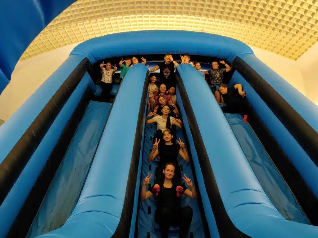 Děti si zde mohly vyzkoušet skoky na trampolínách, parkourové prvky nebo třeba velké nafukovací překážky.