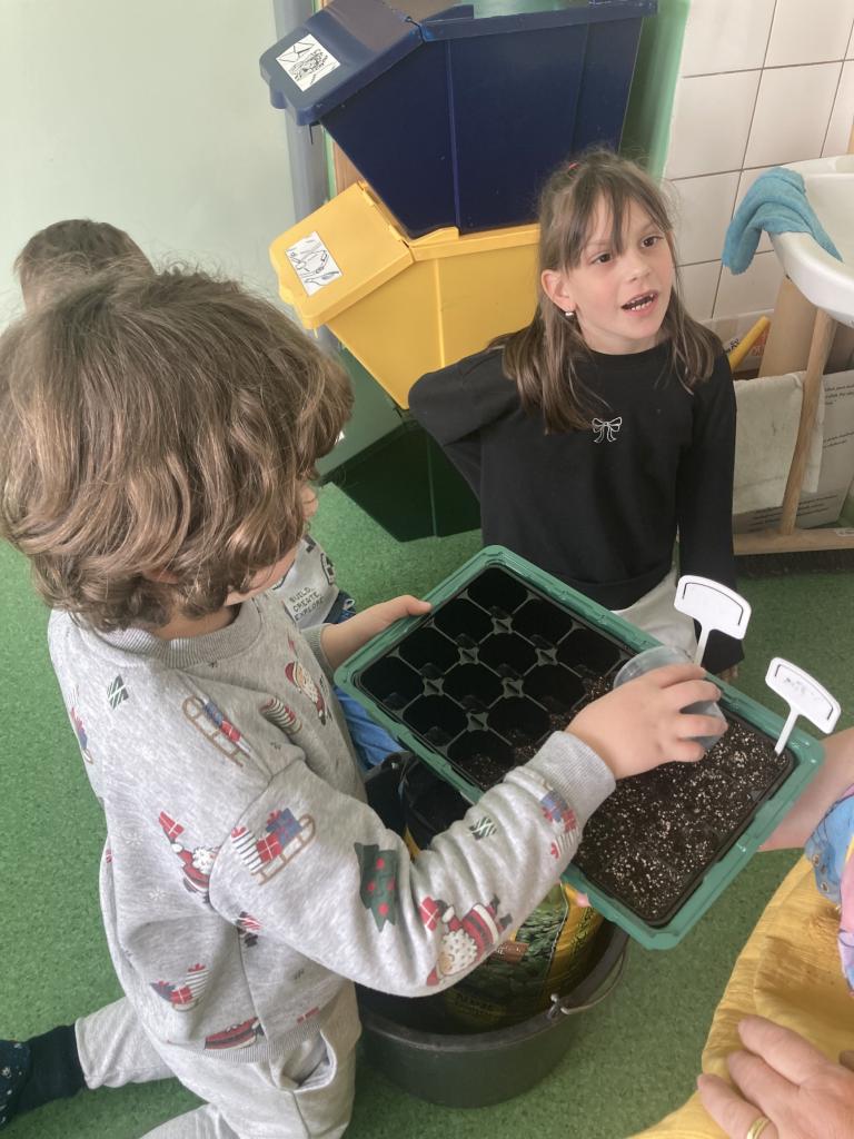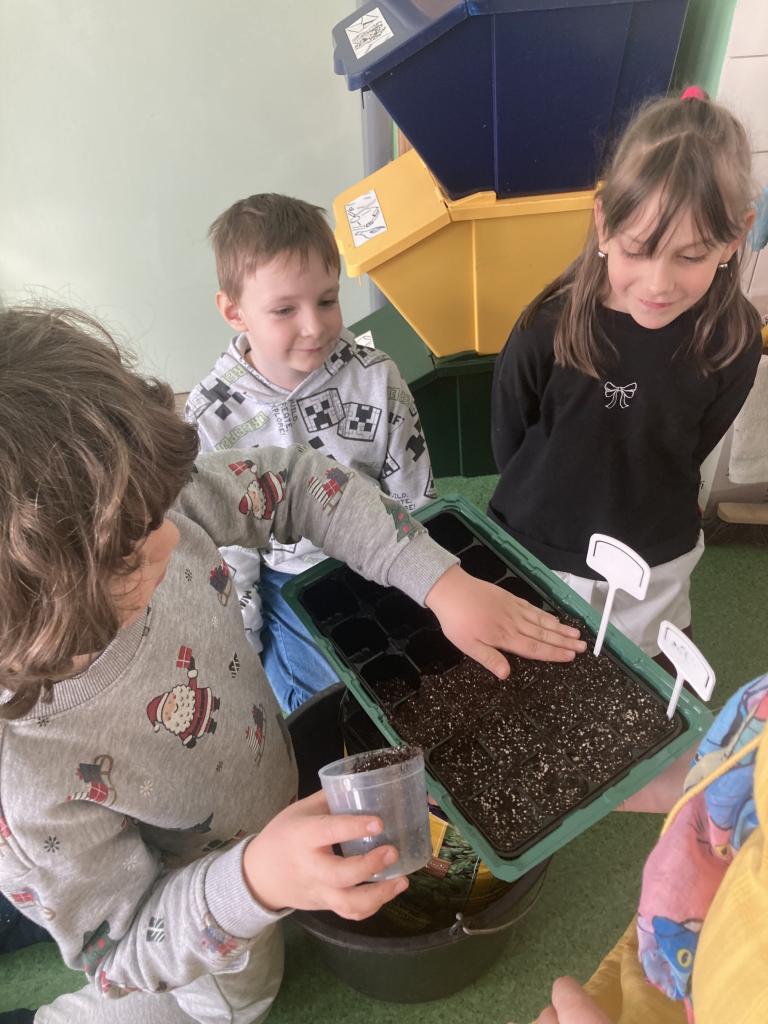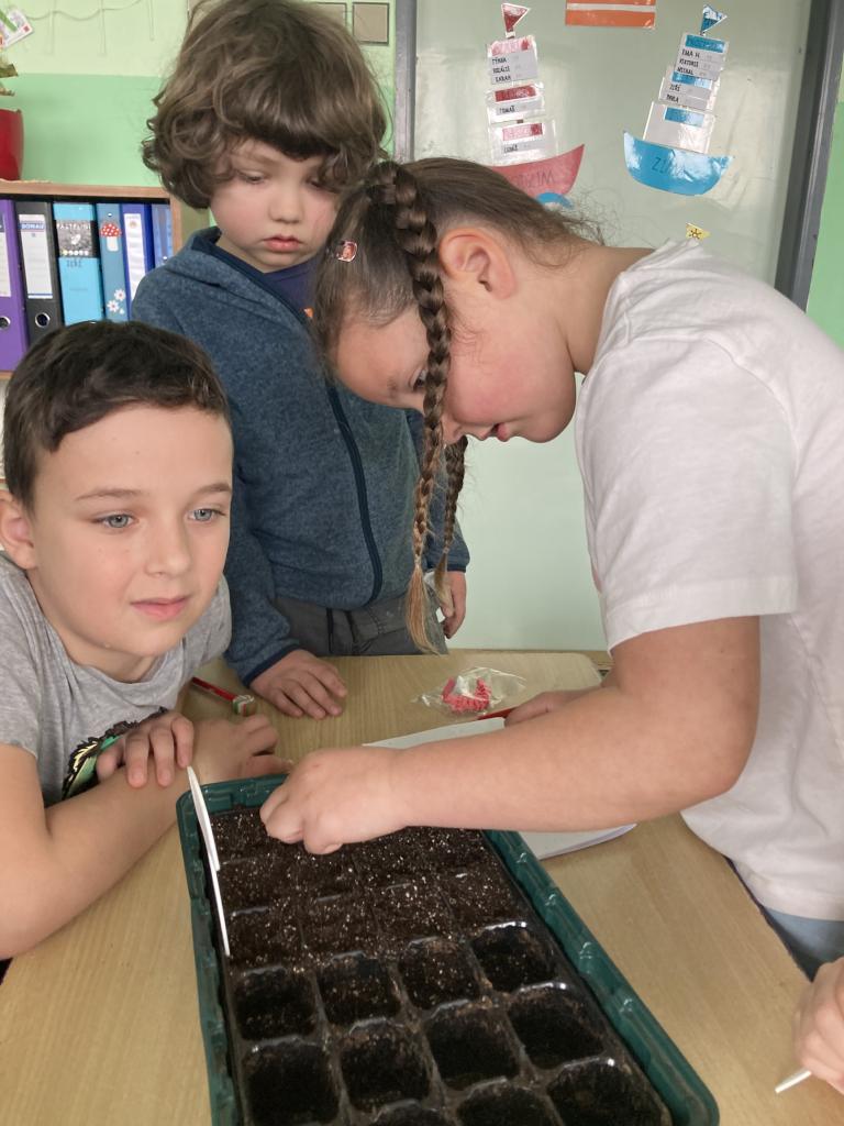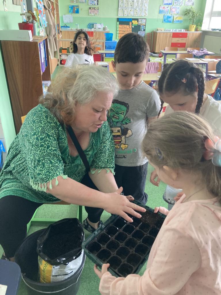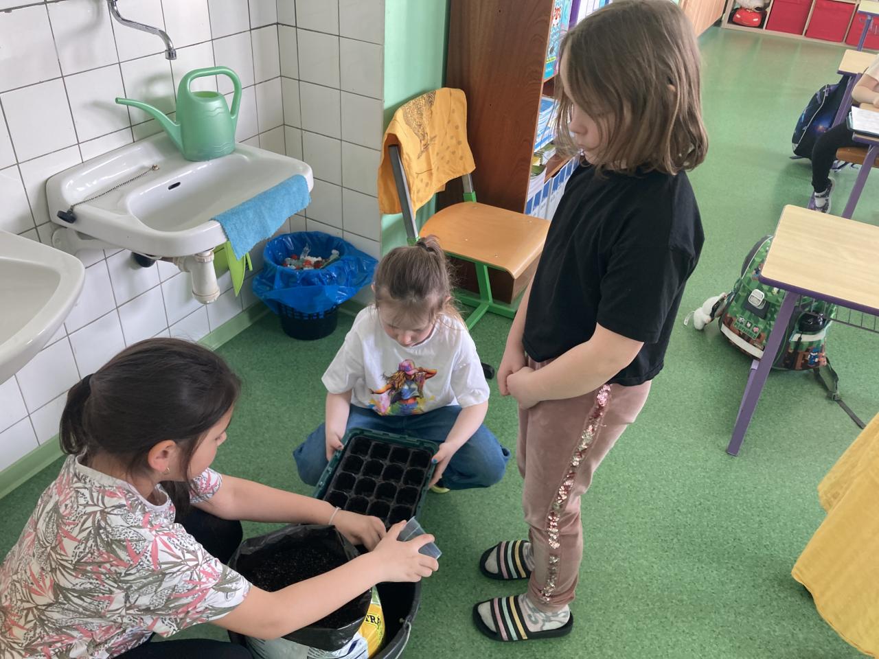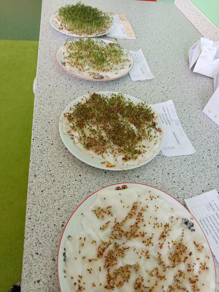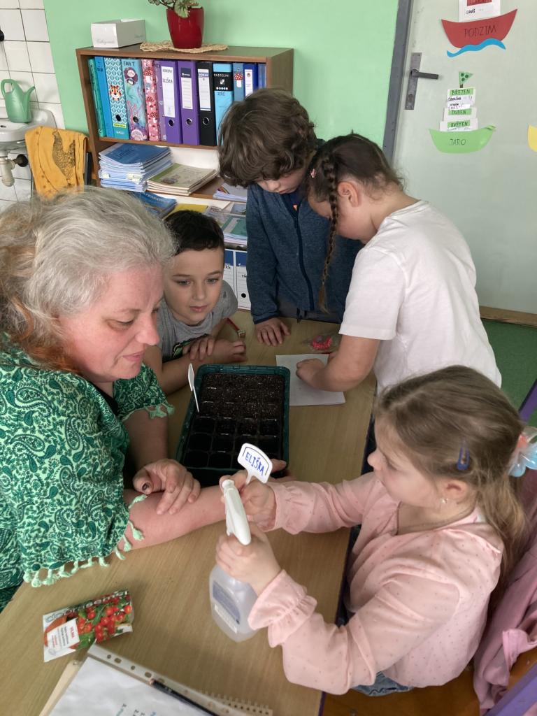 V jarních centrech aktivit jsme se zaměřili na poznávání jarních květin, čtení s porozuměním, opakovali jsme sčítání a odčítání do 20. V atelieru děti vyráběly čápa. Nejvíce se těšily na setí řeřichy a rajčat.