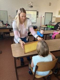 Dnešní ráno bylo voňavé, sladké i poučné. Dozvěděli jsme se mnoho zajímavostí ze života včel, prohlédli si pomůcky včelaře i včelí produkty, pochutnali si na medové snídani.