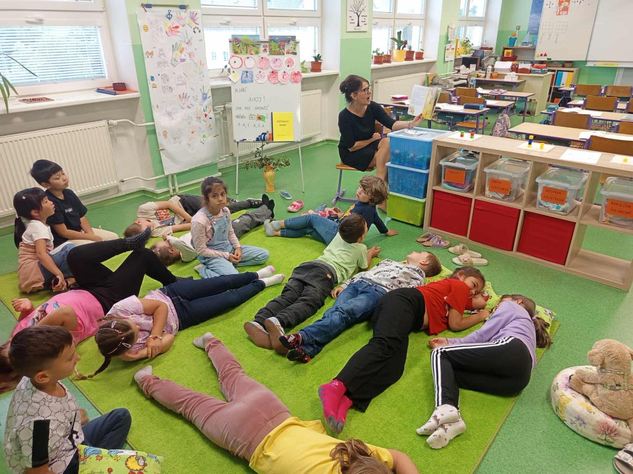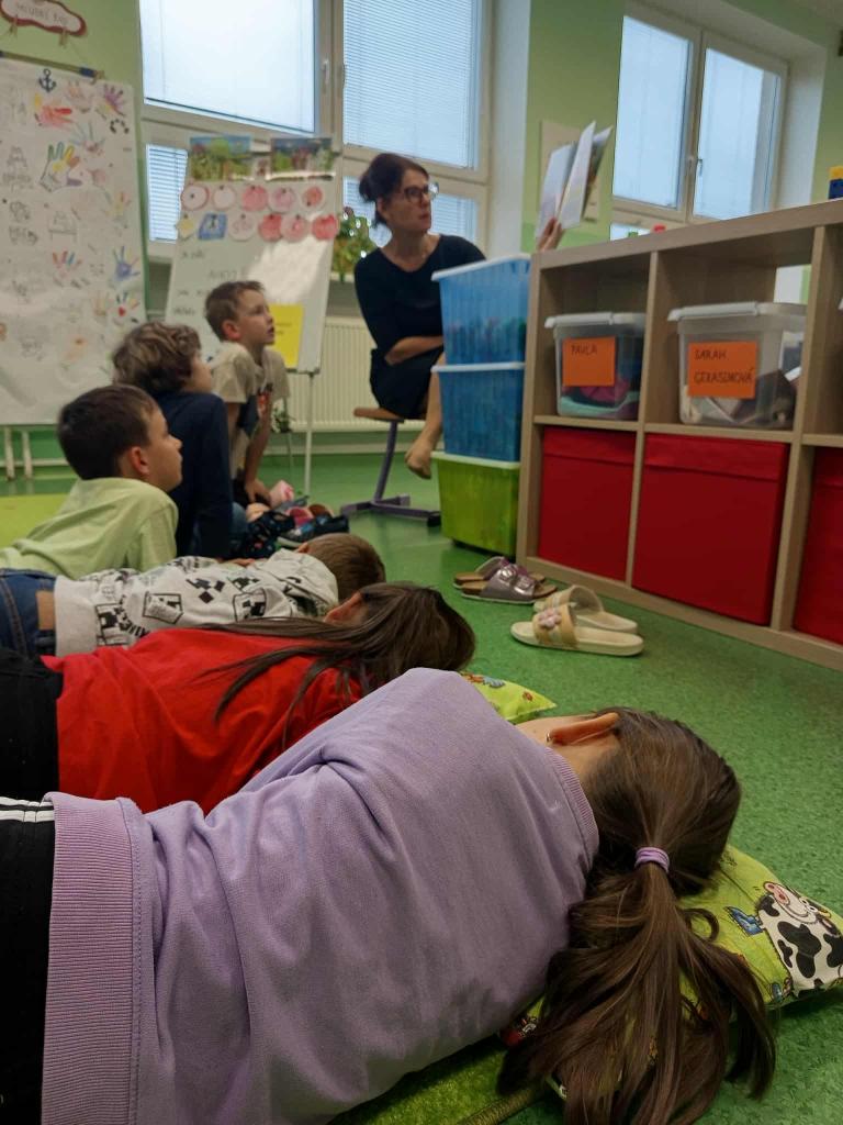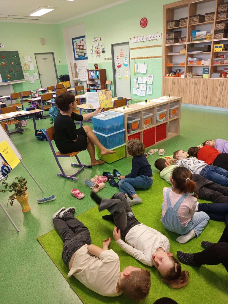 Propojení českého jazyka, prvouky, matematiky, výtvarné i hudební výchovy. Čteme si příběh Stopy podzimu, diskutujeme, poznáváme přírodniny, ochutnáváme podzimní ovoce, zpíváme si písničku Měla babka trnku, tančíme mazurku, procvičujeme vytleskávání krátkých a dlouhých slabik, hláskujeme, čtenáři čtou názvy stromů a plodů, počítáme přírodniny.